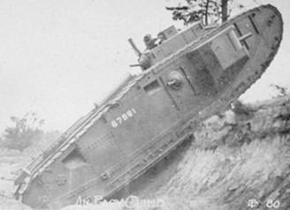Рис.24 – На данном фото, сделанном летом 1941г. на Абердинском полигоне на заднем плане просматривается силуэт танка, похожего на Mk VIII. Ветви гусениц машины, как будто, накрыты неким настилом. На переднем плане GMC Т12.