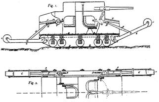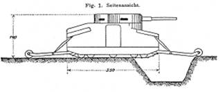 В 1911 году Burstyn создал проект гусеничной бронированной машины «Моторгешютц» (Motorgeschütz). (Рис.2)
