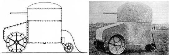 В ноябре 1915г. конструктора Aubriot и Gabet (Обрио и Габэ) предъявили вариант бронетрактора на базе шасси 4-тонного колесного трактора Filtz на электрическом приводе. (Рис.1)