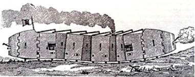 Рис.1 – Проект «гусеничного бронепоезда» Э. Буйена, 1874г.