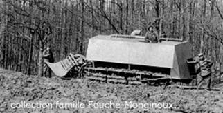Судя по фотографии, на испытании присутствовал и Луи Рено (он сидит в «танке» позади всех в котелке). Сам Фуше стоит слева от машины (одинокая фигура под деревом). Он явно разочарован – машина очень тяжелая и при преодолении незначительного препятствия зарывается носом в землю – все, авария. Правда, работы по прототипу С продолжились. В том же месяце прототип С получает бронекорпус, который, видимо, был разработан Брилье (на Schneider). (Рис.4)