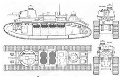 Рис.1 - Char Lourd 2С, проекции и компоновка, 1918г.