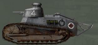 Литва. В 1923г. Литва получила 12 пулеметных танков Renault FT, но вооруженных не пулеметами 8-мм Hotchkiss, а 7,92-мм пулеметами с водяным охлаждением «Максим». (Рис.85)
