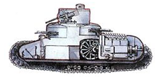 Но особо оригинальной получилась ходовая часть. Применительно на один борт она включала четыре четырехкатковые тележки с жесткой подвеской, направляющие (они же – натяжные) колеса располагались спереди и сзади, а ведущее колесо разместили в средней части корпуса. Оно было спицованным, имело несколько меньший диаметр относительно ленивцев и располагалось несколько выше их. Все открытые элементы ходовой части полностью бронировались. Такой технической ход позволил не только улучшить проходимость по местности, но и защищенность шасси в целом.