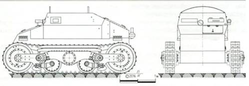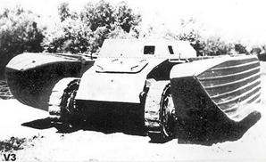 В Британии легким танком Штраусслера не интересовались, но в 1933-1934гг. Штраусслер проектировал легкий танк V/3 по венгерскому заказу. Помимо основных особенностей легкого танка Штраусслера (привод на переднюю и на заднюю пару колес, устойчивость шасси как огневой платформы, амфибийные свойства), в образце для Венгрии предполагалось реализовать следующие новшества: систему подвески без поперечного балансира; выполнить конечную передачу на ведущие колеса через систему дифференциалов и карданных валов, расположенных снаружи по бокам корпуса; установить двухъярусную башню с одним пулеметом в верхнем ярусе и спаренной установкой пушки и пулемета – в нижнем; внедрить в систему охлаждения двигателя специальную турбину для повышения интенсивности охлаждения в связи с увеличенной степенью сжатия (1:7). Вероятно, экипаж танка 3 чел. Масса ок. 8 тонн. (Рис.3)
