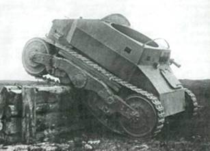 Параллельно в производстве находился и образец для английского военного ведомства, несколько больший по ширине и длине (соответственно, на 9 и 12 дюймов), и ориентировочной массой 9 т (без башни), но, англичане отказались от танка, видимо, еще до окончания его строительства. Вот мнение специалистов британского военного ведомства о конструкции строившейся машины: «...наличие двух двигателей в машине (- без спаривания их трансмиссий) не вселяет уверенности в надежности управления на дорогах, особенно при нештатных ситуациях, даже мгновенные провалы и потеря мощности в одном из двигателей повлечет за собой ужасающие неконтролируемые последствия… Машина неуправляема при движении на склонах из-за неизменного сбрасывания гусениц».