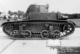 Танк, представленный на фото, имеет граненную башню и ходовую по типу Light Tank T2E1 - задняя тележка уже не служит основанием для крепления ленивца.