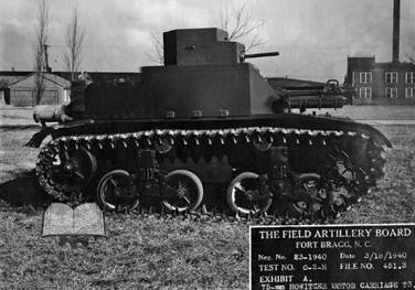 Вооружившись пулеметными танками, американцам следовало задуматься о средствах их усиления в виде САУ. 9 марта 1939 года состоялось заседание Технического комитета по вооружению, в ходе которого была утверждена постройка опытного образца самоходной установки на базе танка Combat Car М1 (Light Tank M1A1) под 75-мм полевую гаубицу М1А1 (75-мм гаубица Pack Howitzer). (Рис.13)
