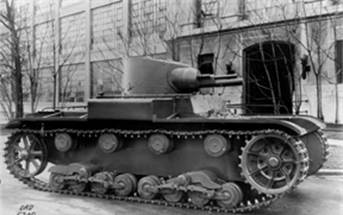 Слева размещался водитель, в отношении его помощника были планы, что он должен был стать радистом, но радиостанции на танке не было. Впоследствии для дополнительного члена экипажа в лобовом элементе установили курсовой пулемёт. Пишут, что в боевом отделении находилось еще 2 члена экипажа – командир и, видимо, наводчик – хотя указывают, что башня являлась одноместной. Двигатель занимал кормовое положение, первоначально на танке стоял 110-сильный мотор. Мотор был отгорожен от обитаемого пространства перегородкой. Трансмиссию в новой машине разместили спереди, посему отделение управления и боевое отделение пересекал вал от мотора к коробке передач. (Рис.7)