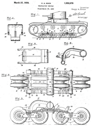 Рис.3 – Из патента Гарри Нокса от марта 1934г. на танк и подвеску для него.