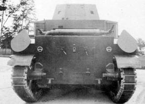 Оценочные габариты машины: длина – 5330 мм, ширина – 2590 мм, высота – 2820 мм, клиренс – 431 мм. Вооружение: 37-мм пушка и 6 пулеметов. Поскольку над вооружением продолжалась работа, в башне была установлена макетная (-?) пушка. (Рис.5)
