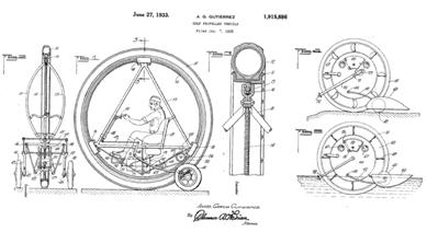 Видимо, идеи Парвеса вдохновили американца Анхел-Гарсия Гутиерреса из Территауна, штат Нью-Йорк на создание боевой машины интроцикла. В январе 1932 года он подал заявку в патентное бюро США на проект боевой амфибийной «самоходной машины» на одном колесе. В сопровождении автор без обиняков указывал: «Оно (- изобретение) должно было создать образ новой боевой машины, способной заменить или стать альтернативой классического варианта танка». Суть изобретения изложена на 5 листах, два из которых занимают схемы. На первом листе изобретение представлено в проекциях спереди и сбоку. (Рис.3)