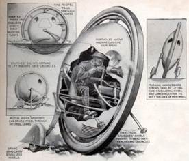 Во время Первой мировой войны в США промелькнуло несколько проектов боевых машин - интроциклов, у которых все механизмы и экипаж находятся внутри ходовой части – колеса или сферы. Интерес к теме интроциклов воскрес в начале 1930-х годов. Спровоцировал его британский инженер Джон Арчибальд Парвес, который разрекламировал свою конструкцию «Динасфера». (Рис.1)