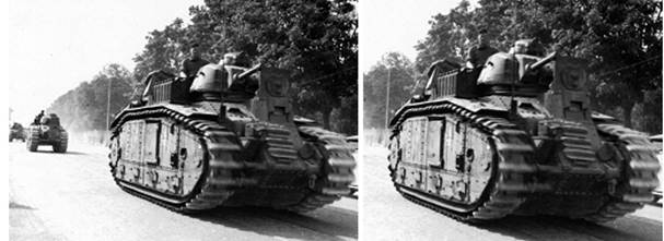 Рис.46 – Танки 213-го батальона, в одном строю линейные Pz.Kpfw. B2 (В1 bis) и огнеметные B2 (F).