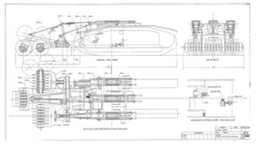 Союзники использовали безбашенную разоруженную базу В1 bis под самоходный катковый минный трал. На освобожденной от немцев территории Франции оставалось большое количество минных полей, заминированных дорог. Работу по теме минного (или противоминного) трала начали на фирме АМХ еще до окончания войны – в апреле 1945г. Окончательно конструкция трехсекционного трала оформилась в сентябре 1945 года. (Рис.52)