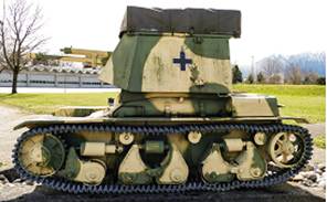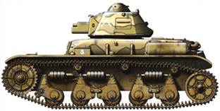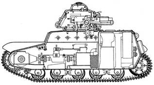 Толщина боковых стенок башни с углом наклона 32° составила 40 мм, лобовой части — 43 мм, крыши – 25 мм. В кормовой части башни находился люк для экипажа – в походном положении командир сидел на откинутой створке люка; в боевом положении командир сидел на ремне, как на Renault FT. На крыше устанавливался поворотный броневой купол (смотровая башенка) с вентиляционным лючком и лючок для флажковой сигнализации. В башне также имелось три прибора наблюдения -по одному спереди, слева и справа. Во внутренней маске башни со смещением вправо устанавливалась 37-мм пушка SA 18 с полуавтоматическим замком, углами поворота по горизонтали от -5 до +5°, и по вертикали от -11 до +19°. Скорострельность орудия 15 выстрелов в минуту, начальная скорость снаряда 367 м/с. Наведение и стрельба из пушки осуществлялось командиром танка с помощью плечевого упора. Слева от пушки располагался телескопический оптический прицел, справа – спаренный с орудием пулемет Chatellerault 7.5 mm MAC31 Reibel. Боезапас - 2400 патронов и 100 снарядов (42 бронебойных и 58 осколочно-фугасных (массой 555 гр.) – в некоторых источниках указывают, что пушка SA 18 не имела в своем арсенале бронебойных боеприпасов, а общее количество снарядов оценивается в 116 выстрелов). (Рис.3)