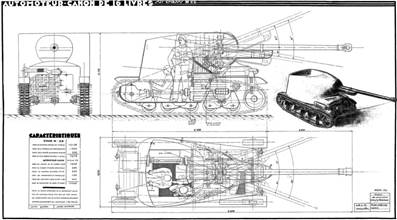 Если немецкая самоходка оснащалась 47-мм противотанковой пушкой (4,7cm PaK(t) L43/4), то французы на своей Automoteur-Canon de 16 livres sur chassis R 35 планировали ставить английскую 17-фунтовую пушку. Боевую массу САУ инженеры AMX оценивали в 12 тонн. Рубку собирались делать литой, в развитой ниже скрывался боекомплект из 58 снарядов. (Рис.42)