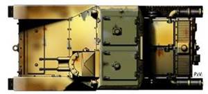 Конструкция моста/рампы состояла из одного длинного изогнутого пролета каркаса, предположительно, выполненного из стали, с проезжей частью, проложенной поверх. Проезжая часть включала ряд поперечных стальных опорных стоек, над которыми была сетка, образующая поверхность, по коей могли проезжать транспортные средства. На вершине кривой, аккурат над головами двух членов экипажа часть проезжей секции отсутствовала. Можно предполагать, что для прохождения техники по мосту/рампе Rampa Semovent укладывалась недостающая секция пролета. Мост/рампа крепился к корпусу машины с помощью изогнутых кронштейнов. Снималось ли при этом вооружение – неизвестно. (Рис.66)