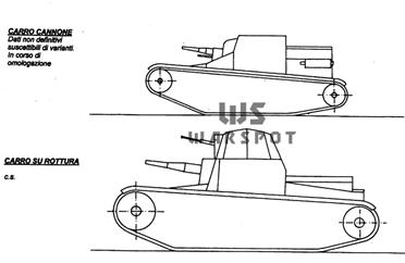 В 1936г. недрах Commando Supremo оформилась идея создать по теме Carro di Rottura 10-тонный танк с экипажем на 3 человек, с основным вооружением в виде 37-мм пушкой, с вращающейся башней, толщиной брони, устойчивой к бронебойным боеприпасам стрелкового оружия и огню 20-мм пушки. В 1936г. полным ходом шли опыты по размещению 37-мм орудия в корпусе C.V.3 (по теме Carro Armato 5Т). Конечно, габариты C.V.3 или Carro Armato 5Т никак не подходили для 10-тонной машины, но можно взять конструкцию корпуса C.V.3, развив его (увеличив, переделав) до необходимых требований. (Рис.1)
