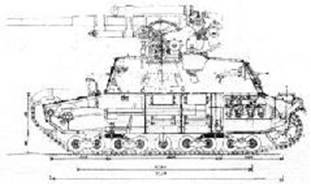 Компоновка однобашенного танка (Рис.5, Рис.6), двигатель, трансмиссия и ходовая часть практически не изменились по сравнению с двухбашенным вариантом.
