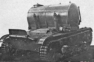 Очень необычно выглядит еще один вариант заправщика на шасси Т-26, в документах того времени его называли ТЦ-26, сейчас встречается ТР-26Ц. (Рис.57)