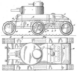Пишут, что в окончательном виде проект колесно-гусеничного танка Кристи, известного под обозначением Christie M1919, был готов 8 июня 1920 года, при этом приводится оригинальный эскиз Christie M1919 Medium Tank, датируемый октябрем 1920 года (Рис.7).