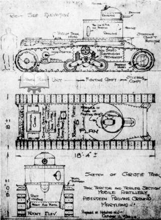 Рис.5 – Изначальная концепция среднего колесно-гусеничного танка Кристи.