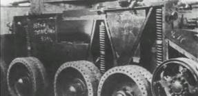 в кормовой части. Все катки, включая ведущие колеса и ленивцы, имели резиновые