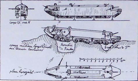 И, наконец, данная машина должна была быть плавающей! Perrinelle-Dumay рассчитал, что для его танка высота