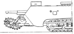 машины располагалась силовая установка. Танк вооружался тремя орудиями – двумя