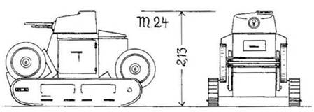 В 1924г. появилась модификация М1924. Ее главное отличие от М1921 заключалось в наличие одноместной конической башни, наподобие той, что ставилась на танки Renault, но без характерного грибовидного колпака. (Рис.2)