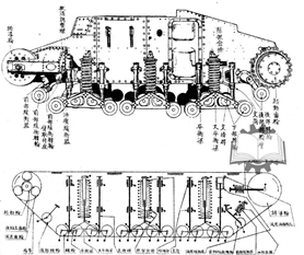 Рис.2 – Ходовая часть Renault NC1 крупным планом, чертеж выполнен японскими специалистами.