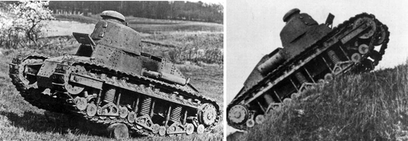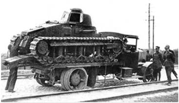 В 1928г. в Польшу для оценочных испытаний были доставлены два танка: один - NC27 (Рис.11), а другой представлял собой Renault FT с модернизированной ходовой Hinstin-Kegresse.