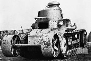 Рис.3 – На фото, похоже, NC2 Hinstin-Kegresse, но с башней и вооружением от американского аналога Renault FT-17 – танка Six-ton Tank M1917, хотя на машине стоит не характерное для NC2 Hinstin-Kegresse ведущее колесо.