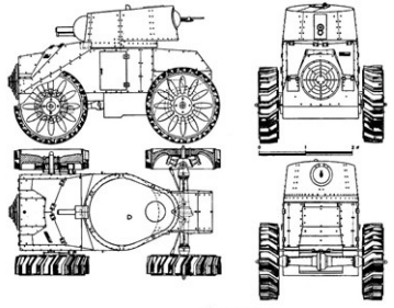 В 1928г. на тягач Fiat Pavesi (Рис.1), как на возможную базу для колесного танка обратил внимание глава фирмы Ansaldo Джованни Ансальдо, который был впечатлён необычной конструкцией артиллерийского тягача высокой проходимости.