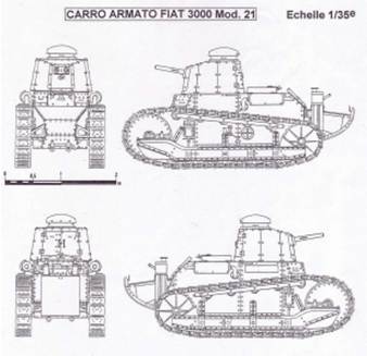 Но война кончилась и надобность в таком количестве танков отпала – заказ сократили до 100 машин. В то же время, итальянские инженеры задумали внести ряд изменений в конструкцию французского легкого танка. Итальянцы хотели увеличить боевое отделение и отделение управления, снизить массу машины с семи до шести тонн, увеличить скорость танка, усилить вооружение за счет спарки пулеметов. Так появился план строить собственный вариант легкого танка, получивший название FIAT 3000. К апрелю 1919 года был готов технический проект.