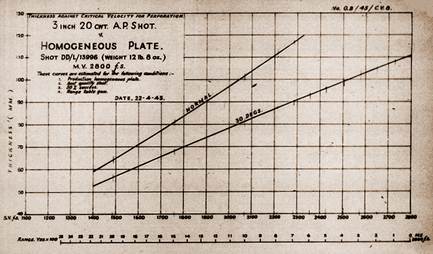 3-дюймовая зенитка QF 3-inch 20 cwt, принятая на вооружение в 1914 году, постепенно вытеснялась со службы более современным 3,7-дюймовым (94 мм) орудием. Зенитка весила 20 английских центнеров, или примерно 1000 кг, и не отличалась компактностью. Старые пушки хранились на складах. Посчитали, что из них могло получиться довольно мощное противотанковое орудие. В существующие танки орудие попросту не влезало, но шасси Churchill под него годилось. В результате испытаний оказалось, что осколочно-фугасные гранаты зенитки бесполезны даже против брони лёгких танков. Зато трёхдюймовая болванка весом 12,5 фунтов (5,67 кг) с начальной скоростью 2600 футов (792 метра) в секунду могла пробить 75 мм брони под углом 30° с 400 ярдов (365 метров), 58 мм с 1000 ярдов (914 метров), или 37 мм с 2000 ярдов (1828 метров). Также разрабатывался улучшенный бронебойный снаряд, способный пробить 100 мм со 100 ярдов (91 метр) и 80 мм с 750 ярдов (686 метров). Характеристики получившегося снаряда оказались несколько ниже: он пробивал 91 мм с 400 ярдов, 77 мм с 1000 ярдов и 55 мм с 2000 ярдов. Также обсуждалась разработка каморных бронебойных снарядов, заброневое действие которых было бы выше, чем у традиционных «болванок». (Рис.1)