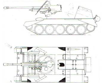 Рис.5 – Эскизный проект САУ с 76-мм (17-фунтовой) пушкой на шасси Crusader.