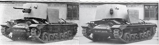 решили использовать шасси Valentine. В случае с Valentine танк терял башню с вооружением. Появилась бронерубка для оператора