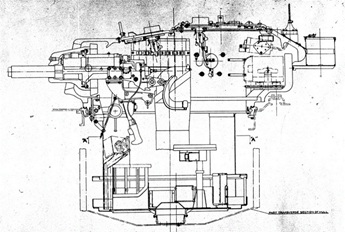 При проектировании за основу взяли штатную башню, не меняя ее погон. Для размещения в ней третьего человека ее следовало удлинить. У башни появилась развитая кормовая ниша, в которую убрали радиостанцию, ранее стоявшую внутри башни на специальной подставке. В задней части башни таким образом появилось место для командира – правда, место это было впритык – командир находился за казенной частью орудия, буквально упираясь в ограждение 2-фунтовки. С другой стороны на 140 мм удлинили носовую часть башни. Благодаря этому удалось вынести вперед на 203 мм орудийную установку. (Рис.2)