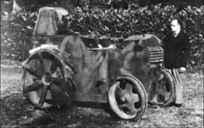 Среди разнообразия импровизированных броневиков для British Home Guard попадается один тип колесного бронированного трактора – Leo Villa Tank, который по внешним признакам придется отнести к танкам. Масса, предположительно, около 2,5 тонн. Машина вооружалась одним пулеметом (- пистолетом-пулеметом?) Thompson Submachine Gun во вращающейся турели, бронирование 4-10 мм, экипаж, возможно, 2 чел, скорость 21 км/ч. Вероятно, Leo Villa Tank существовал в виде предложения в единственном экземпляре. (Рис.1)