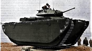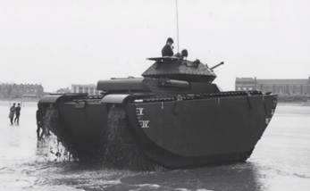 Вероятно, в то же время военные пришли к мысли, что им нужен совершенно другой тип плавающего танка – тип, который можно было бы использовать в морских десантных операциях, а не только для преодоления незначительных водных преград на суше. Такой взгляд полностью менял подход к конструированию плавающих танков – нужна была более крупная машина, обладавшая такими мореходными качествами, которые позволяли бы ей преодолевать определенные водные пространство в прибрежной морской зоне.