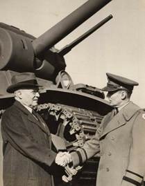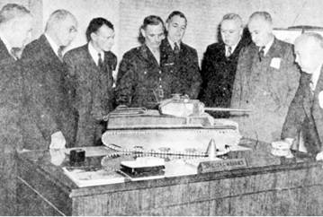 Внизу - генерал Барнс (в центре, получил звание бригадного генерала в начале октября 1940г.) и представители американских заводов, задействованных в программе Heavy Tank T1, осматривают модель танка.