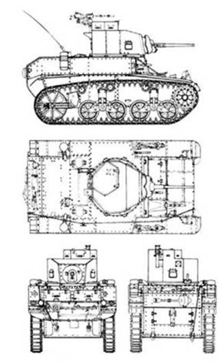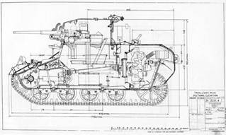 Вооружение. В башне - в орудийной установке M22 Mount. Главным отличием ее стала переделка откатных механизмов орудия M5. Это позволило снизить массу установки и существенно улучшить ее защиту. Исчез также массивный кожух, прикрывавший накатник орудия. В установке M22 Mount размещались 37-мм пушка М5 и спаренный 7,62-мм пулемет Browning М1919А4. Установка M22 Mount имела возможность вертикальной наводки в пределах −10…+20° и точной доводки в горизонтальной плоскости до ±10° (без поворота самой башни). Для наведения орудия использовался телескопический прицел M40A2 (поле зрения 9°, увеличение ×1,44). Один пулемет 7,62 мм являлся курсовым (устанавливался в лобовой детали корпуса) и еще 2 таких же пулемета могли устанавливаться в надгусеничных полках слева и справа – как сообщают, огонь из них дистанционно вел водитель при помощи спусковых тросов. В качестве штатного указывается зенитный пулемет. (Рис.6)