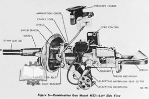 В 1942г. на Light Tank M3 решили установить 37-мм танковую пушку М5Е1, которая была стандартизирована 14 ноября 1940г. как М6. В отличие от пушки M5, которая по конструкции почти не отличалась от противотанковой пушки M3, новое орудие имело иной по конструкции ствол и казённую часть. Пушку М6 решили ставить в новой орудийной установке M23, оснащённой вертикальным гироскопическим стабилизатором – разработка фирмы Westinghouse Electric (разработка стабилизатора к 37-мм пушке велась с 1939г.). Появление гироскопического стабилизатора было вызвано высоким рассеиванием при стрельбе из орудия на ходу. При ведении огня в движении в цель попадало всего 4% выпущенных снарядов. Говорят, причина этого крылась в высоком центре тяжести машины и относительно коротким габаритом по длине. Объединённые вместе, пушка M6 и установка M23 на испытаниях показали заметно лучшие показатели при стрельбе с ходу. (Рис.13)