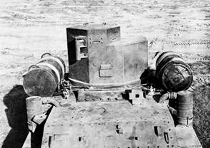В сентябре-ноябре 1941г. провели тестовую установку дополнительных топливных баков на Light Tank M3. Для увеличения запаса хода машины на надгусеничных полках разместили два дополнительных бака по 95 (94,6) литров каждый – в некоторых источниках указывают, что ёмкость каждого бака составляла 102 л. Баки соединялись трубопроводами с основной топливной системой. Поскольку баки находились довольно высоко и представляли собой хорошую мишень, их выполнили, по аналогии с самолётными баками, из самозатягивающегося материала. Установка баков удвоила запас хода – до 217 км, но при этом сектор обстрела орудия сократился до 90° в каждую сторону. Однако с таким неудобством можно было мириться, поскольку баки легко снимались. (Рис.18)