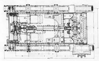 удлиненную ходовую часть с опущенным ленивцем. Двигатель и трансмиссия