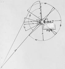 Рис.3 – Схема обзорности из танка М3, схема выполнена советскими специалистами.