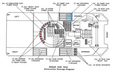 Отмечалось также, что Sherman легко горят — даже чаще, чем танки типа Medium M3. Преимущественно, дело было в расположении боеукладок. Один из английских авторов в бронетанковом журнале размышлял, что хорошо бы поместить боеукладку в 32 снаряда вдоль правого борта на пол боевого отделения. Не добавляло живучести «Шерману» и то, что при штатном боекомплекте в 96 снарядов англичане шли в бой со 140–150 выстрелами. При попадании в такой танк вражеского снаряда осколки неизменно поражали боекомплект, что приводило к его детонации и пожару. Была и ещё одна причина возгораний: открытые люки водителя или его помощника (нередко эти члены экипажа намеренно не закрывали люки в бою, чтобы иметь возможность экстренно покинуть танк) вызывали приток воздуха, из-за чего любой огонь мгновенно охватывал машину. По мнению британских танкистов, орудие было мощным и легко заряжалось, но перископический прицел им не понравился. Он плохо пропускал свет и не годился для стрельбы на большие дистанции, так как разметка полностью закрывала цель на расстоянии 2500 ярдов (2300 метров), хотя пушка могла поджечь немецкий танк типа Pz.Kpfw.III c дистанции 2800 ярдов (2600 метров). Верхняя призма перископического прицела не имела защиты, из-за чего её было легко повредить не только противнику в бою, но и членам экипажа — забираясь по крыше башни. Также призма не была защищена от бликов солнца, что оказалось весьма неприятно в пустыне. Перископические прицелы быстро сбивались на марше. Рабочие места экипажа также подвергли критике. У командира вместо одного подвижного сиденья было два: одно для верхнего положения, другое для нижнего — оба слишком маленькие. Спинка сиденья наводчика мешала занимать и покидать его место, а также заслоняла доступ к половине боевого отделения. Сиденье заряжающего тоже было слишком маленьким, а его положение нашли слишком высоким для того, чтобы можно было заряжать пушку сидя. Заряжающий, лишённый собственного люка, был вынужден пробираться под ограждением орудия, что могло стоить жизни. Многие экипажи снимали ограждения, предпочитая риск травмы при откате, чем смерть в горящем танке. Из-за спинок кресел водителя и его помощника их было почти невозможно вытащить из люка в случае ранения. Надевать на них специальные лямки для вытаскивания при помощи крана тоже было сложно. Предложение постоянно носить их не прибавляло танкистам жизненного оптимизма.