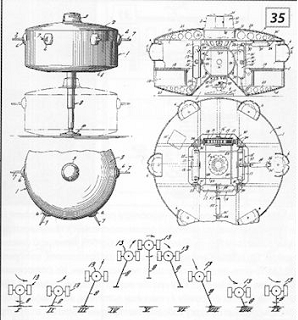 В 1942г. житель гор. Freeport, New York, USA Henry Wallace подал заявку на патент США US2371368. Он предложил боевую машину без гусениц или колес, опирающуюся на одну опору и за счет этой опоры перемещающуюся по планете Земля.